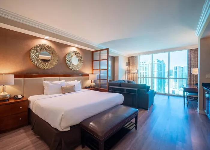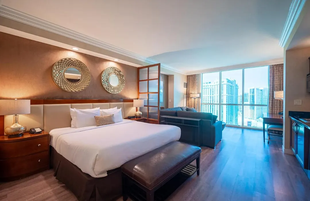 Als je verblijft in deze 0-slaapkamer No Resort Fee Strip View Suite +Free Valet + Pool Las Vegas villa, kun je gemakkelijk Las Vegas Strip bereiken, die op loopafstand van circa 19 minuten ligt.